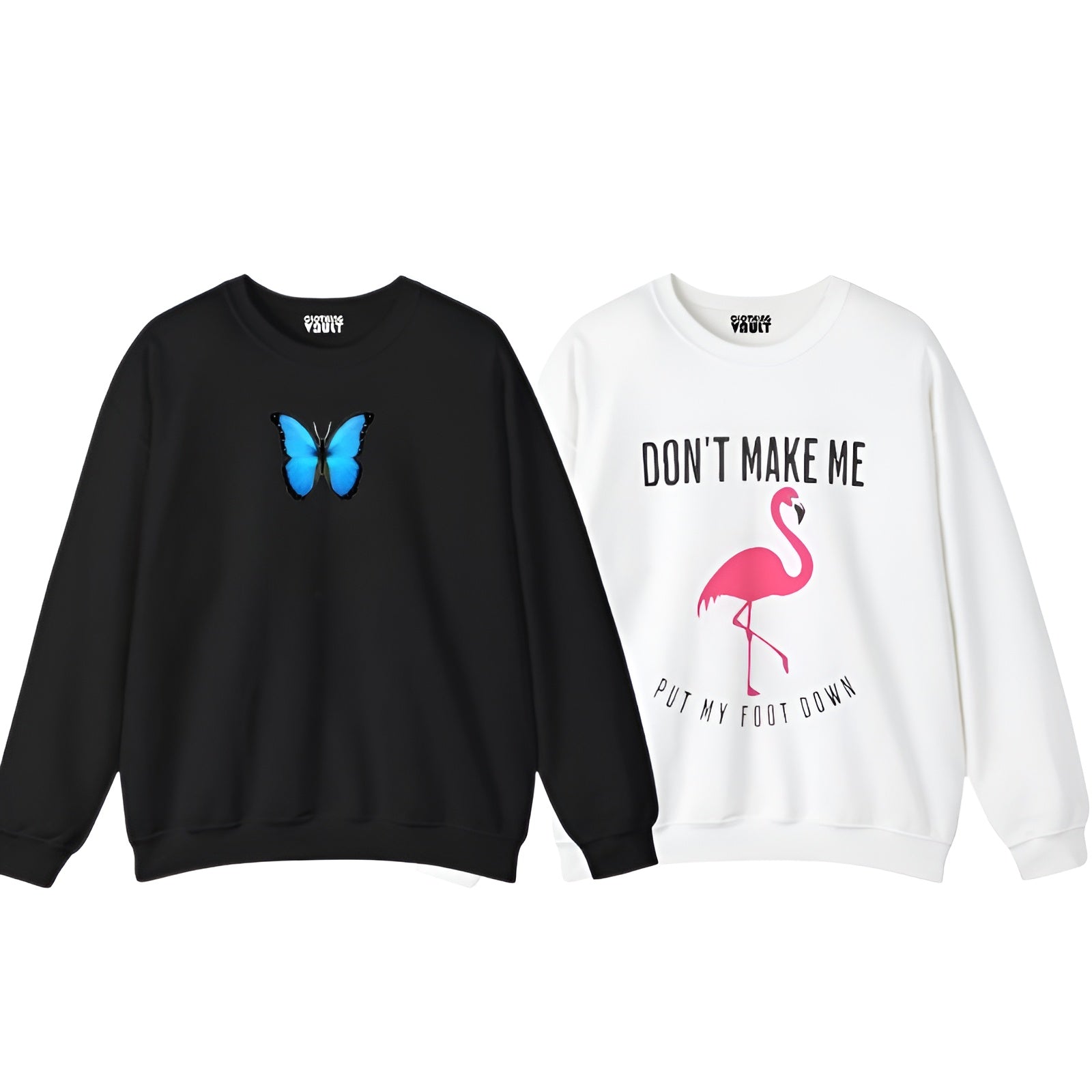 Elevate your casual wardrobe with this stylish black sweatshirt featuring a vibrant blue butterfly design. Perfect for adding a pop of color to your outfit, it's comfy and versatile for any occasion. Whether you're lounging at home or out with friends, this sweatshirt is sure to make a statement