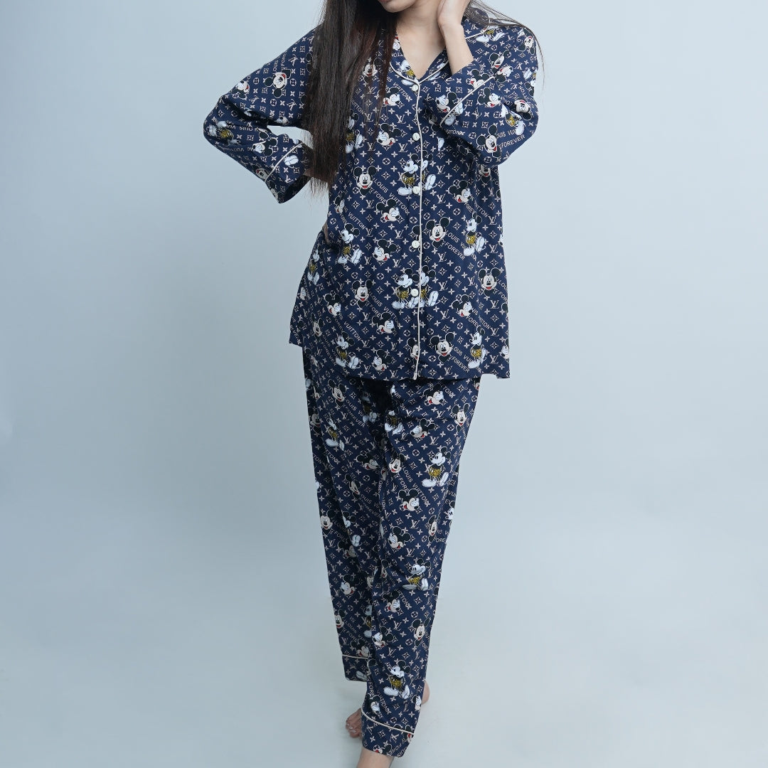 Linen PJ set in soft fabric. Notch collar and button through opening. Full sleeves