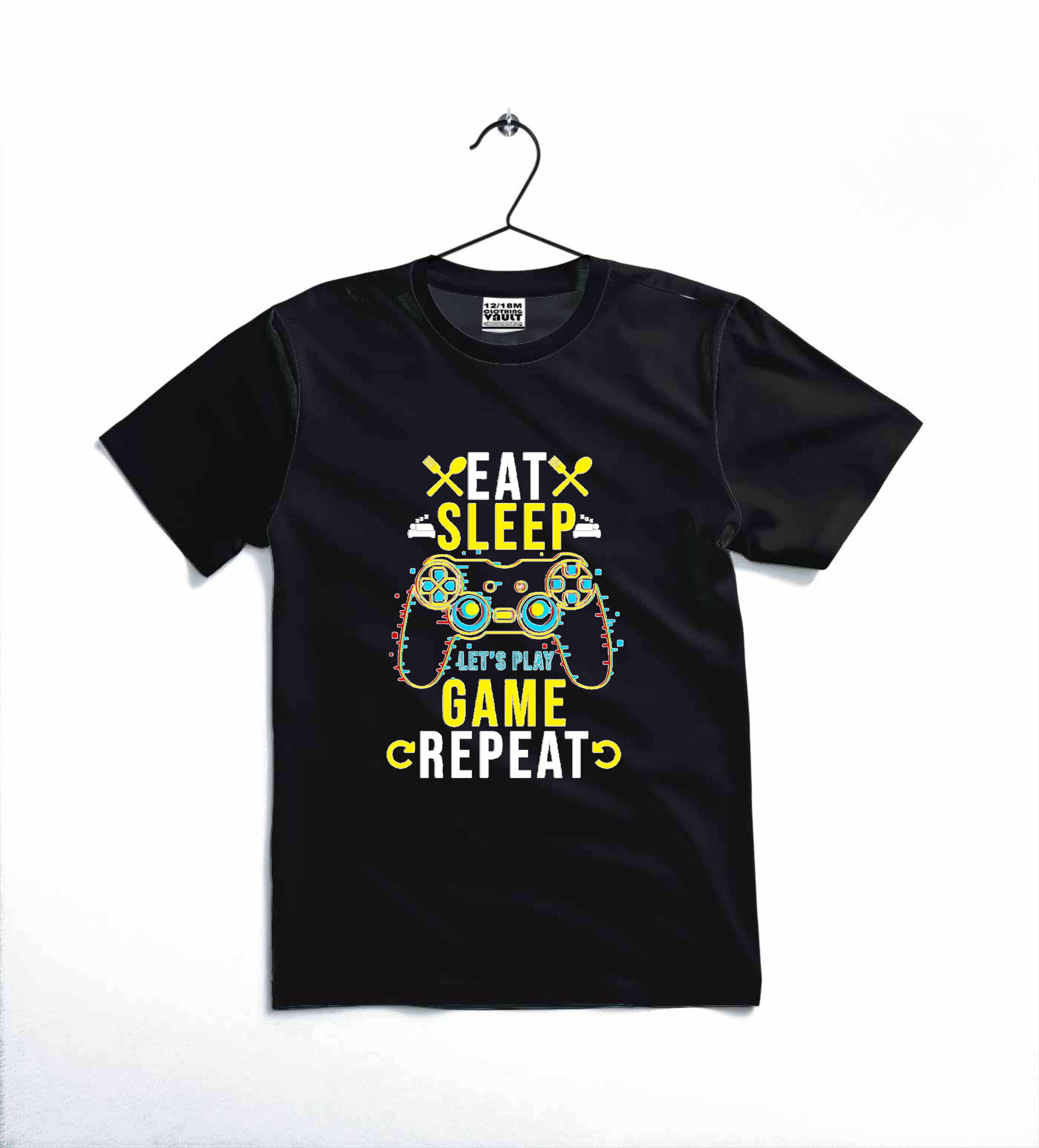 Level up your wardrobe with these cool t-shirts featuring the catchy phrase "Eat Sleep Game Repeat." Perfect for gamers and casual wear, it’s made from soft, breathable fabric that keeps you comfy during those long gaming sessions. Show off your passion for gaming in style