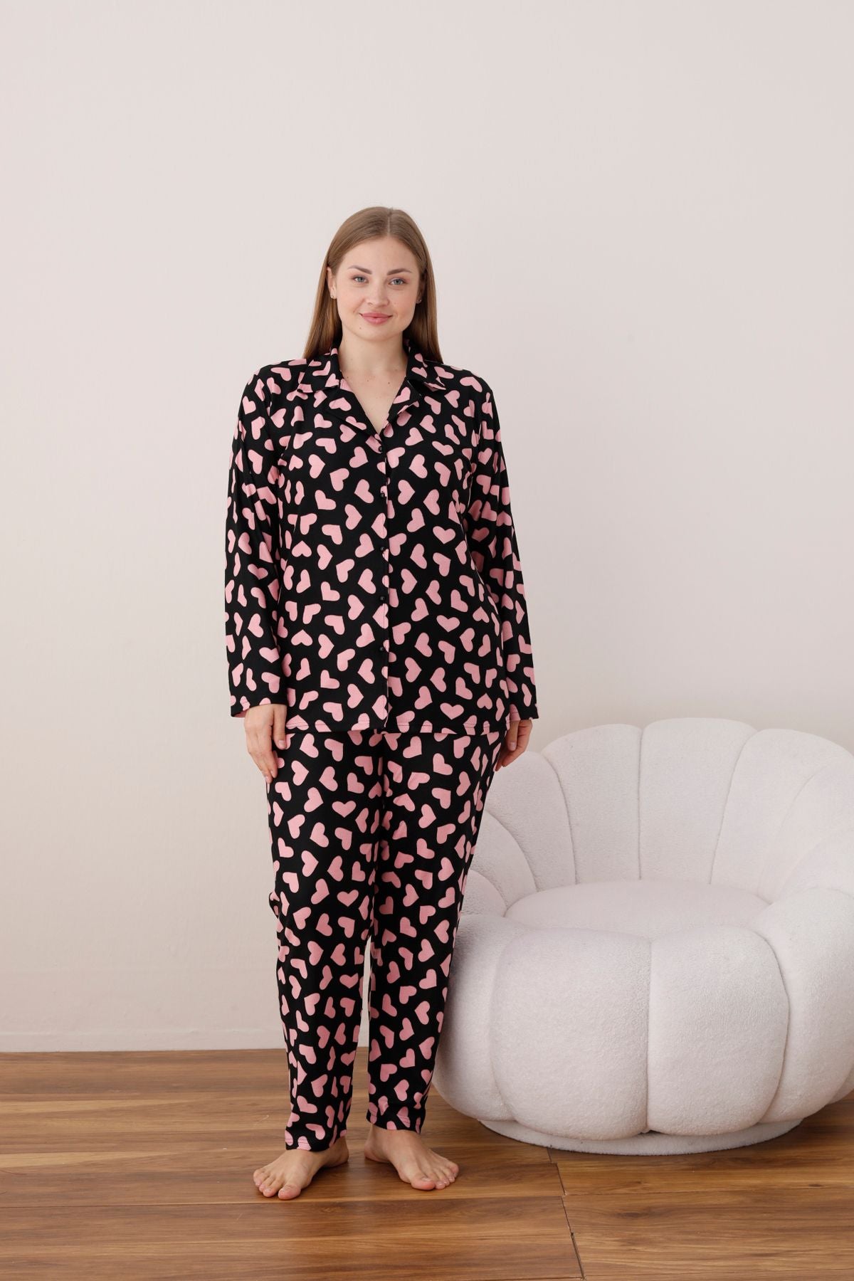 Matt silk PJ set in soft silky fabric. Notch collar and button through opening. Full sleeves Fabric...
